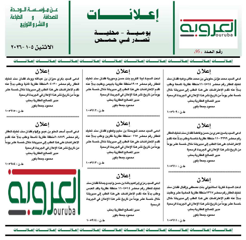 إعلانات العروبة إعلانات في 5 كانون الثاني , 2026 شارك FacebookWhatsAppFacebook MessengerTelegramTwitter
