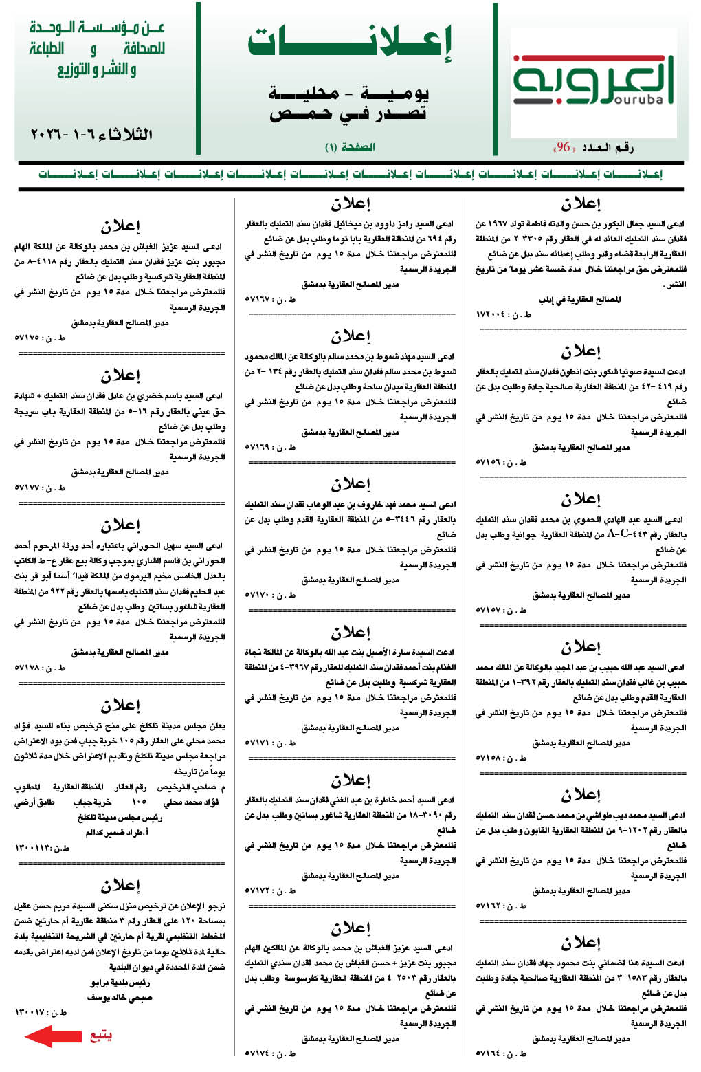 إعلانات العروبة إعلانات في 6 كانون الثاني , 2026 شارك FacebookWhatsAppFacebook MessengerTelegramTwitter