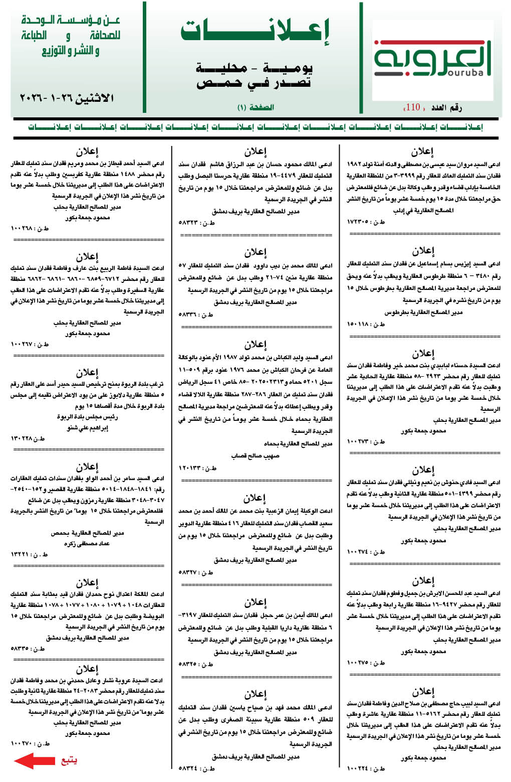 إعلانات العروبة إعلانات في 26 كانون الثاني , 2026 شارك FacebookWhatsAppFacebook MessengerTelegramTwitter