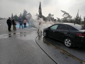 قائد فوج إطفاء حسياء بلال حيدر أوضح للعروبة أن سبب الحريق يعود إلى ماس كهربائي في المركبة، مشيراً إلى استخدام مادة البودرة إلى جانب مياه التبريد لإخماد الحريق ومنع امتداده إلى أجزاء أخرى من السيارة أو إلى محيطها.