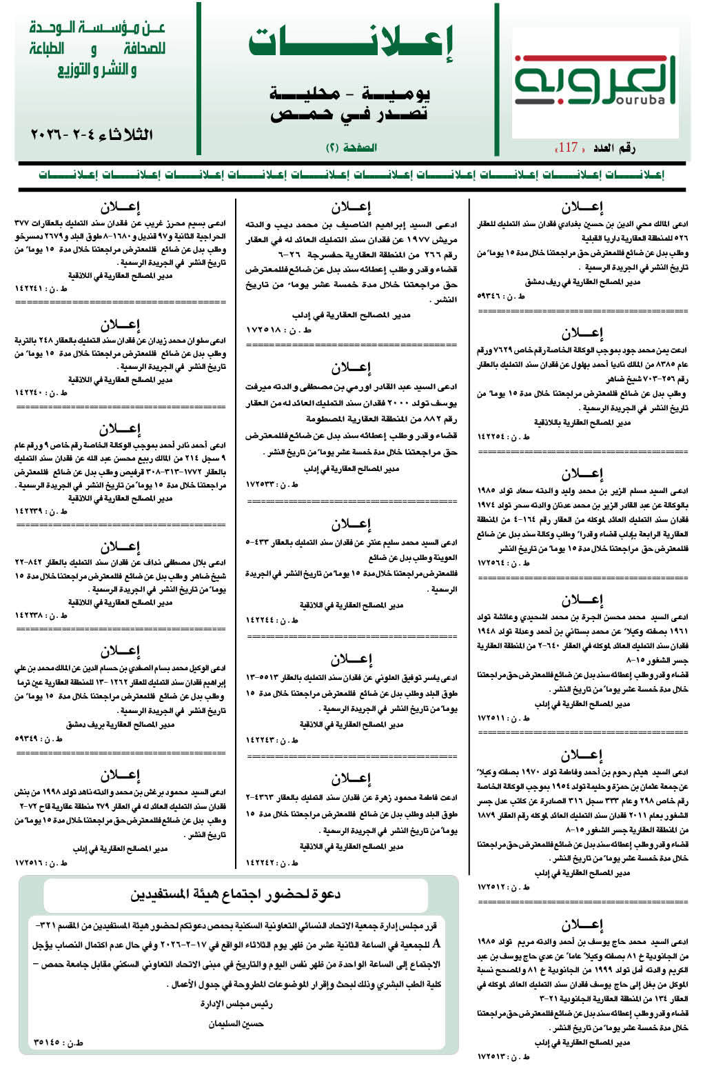 إعلانات العروبة إعلانات آخر تحديث 4 شباط , 2026 شارك FacebookWhatsAppFacebook MessengerTelegramTwitter
