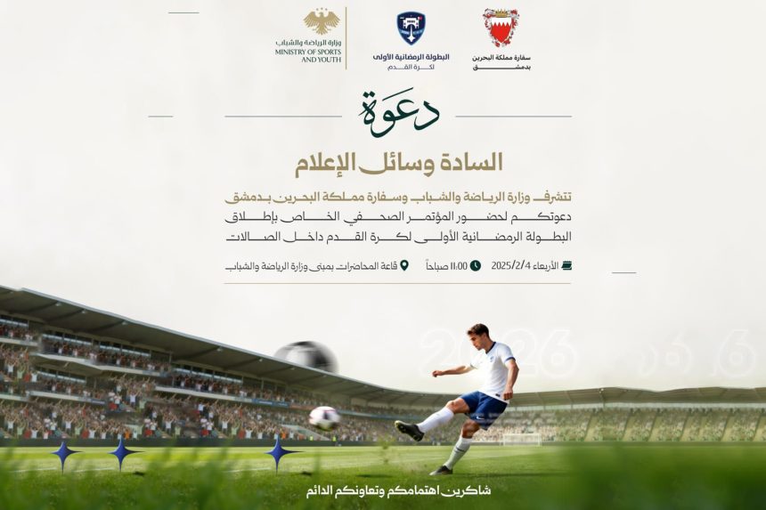 تنطلق غداً البطولة الرمضانية الأولى لكرة القدم داخل الصالات في صالة الجلاء الرياضية بدمشق، التي تقام بالتشاركية بين وزارة الرياضة والشباب، وسفارة مملكة البحرين في دمشق، وبالتعاون مع الاتحاد السوري لكرة القدم، بمشاركة 16 فريقاً.