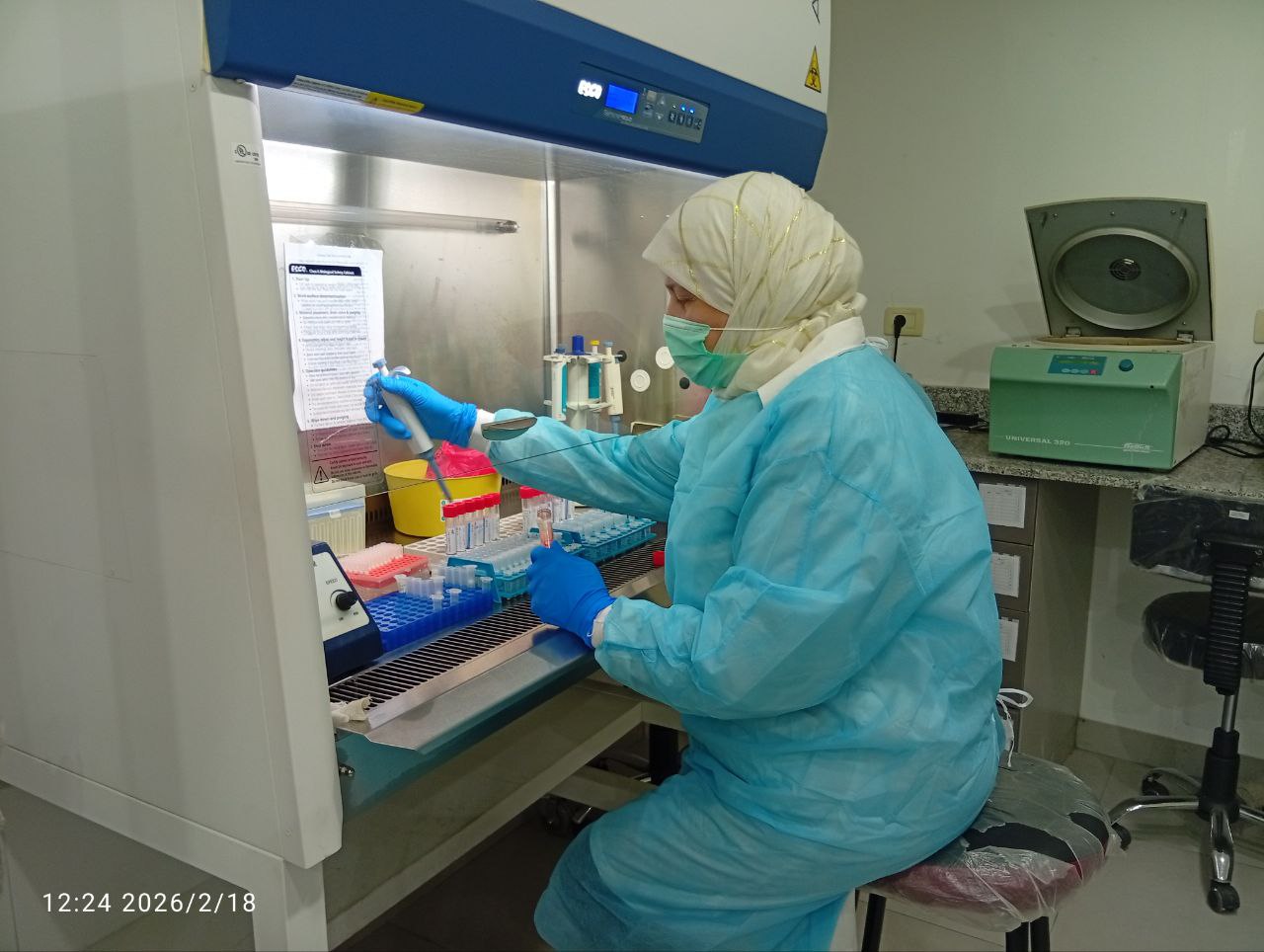وبيّنت أن آلية العمل تعتمد تقنية دقيقة تمر بثلاث مراحل حساسة تُنفذ ضمن شروط تعقيم صارمة، نظراً لأن أي خطأ أو تلوث قد ينعكس مباشرة على دقة النتائج، مشيرة إلى أن كل مرحلة تُجرى في قسم منفصل لضمان أعلى درجات الأمان المخبري.