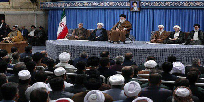 جاء ذلك خلال استقبال الخامنئي اليوم المشاركين في مؤتمر الوحدة الإسلامية الدولي بنسخته الثالثة والثلاثين المنعقد في العاصمة الإيرانية طهران ومن بينهم وفد سورية برئاسة وزير الأوقاف الدكتور محمد عبد الستار السيد وبحضور سفير سورية في إيران الدكتور عدنان محمود.وأشار الخامنئي خلال اللقاء إلى أن الولايات المتحدة عدو لكل الدول الإسلامية ومنها فلسطين وكذلك شعوب غرب آسيا وشعوب شمال أفريقيا.