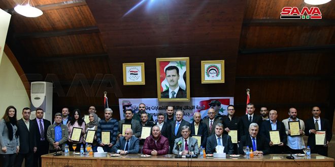 وتم في ختام الحفل تكريم الزملاء الفائزين بالمركزين الأول والثاني في كل مسابقة وتكريم الزميل محمود قرقورا من صحيفة الوطن الذي أصدر كتاباً رياضياً جديداً بالتعاون مع الاتحاد الرياضي العام بعنوان (الدوري السوري.. ومضات وأبطال) حيث يدخل ضمن الموسوعة الرياضية ويشكل إضافة مهمة للمكتبة الرياضية.