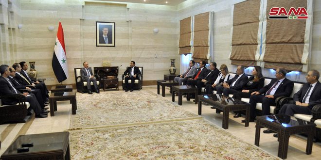 تركز لقاء رئيس مجلس الوزراء المهندس عماد خميس اليوم مع المكتب التنفيذي لنقابة المعلمين في سورية برئاسة وحيد الزعل حول دور النقابة في بناء الإنسان والتنمية البشرية وتحصين المجتمع من الأفكار المنحرفة والمتطرفة التي أفرزتها الحرب.
