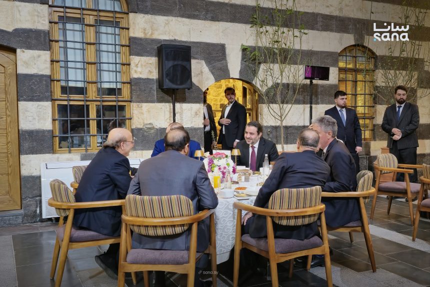 وقال الوزير الشيباني خلال مأدبة إفطار رمضاني أقامتها الوزارة لممثلي السفارات والبعثات الدبلوماسية المعتمدة في الجمهورية العربية السورية: “في شهر رمضان المبارك، نلتقي في دمشق لنؤكد قيم التراحم والتعارف بين الشعوب، تلك القيم الأصيلة التي تشكل جزءاً من رسالتنا الإنسانية المشتركة، ومن تاريخ هذه الأرض التي كانت على الدوام مهد الحضارة وملتقى الثقافات”.