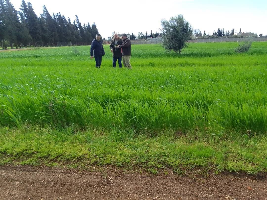 تتابع مديرية زراعة حمص واقع محصول القمح من خلال تنفيذ جولات ميدانية إلى حقول المزارعين في مختلف مناطق المحافظة، بهدف تفقد المحصول ومراقبة مراحل نموه، وتقديم النصائح والإرشادات اللازمة للمزارعين، وتأمين الشروط المناسبة للنمو السليم.