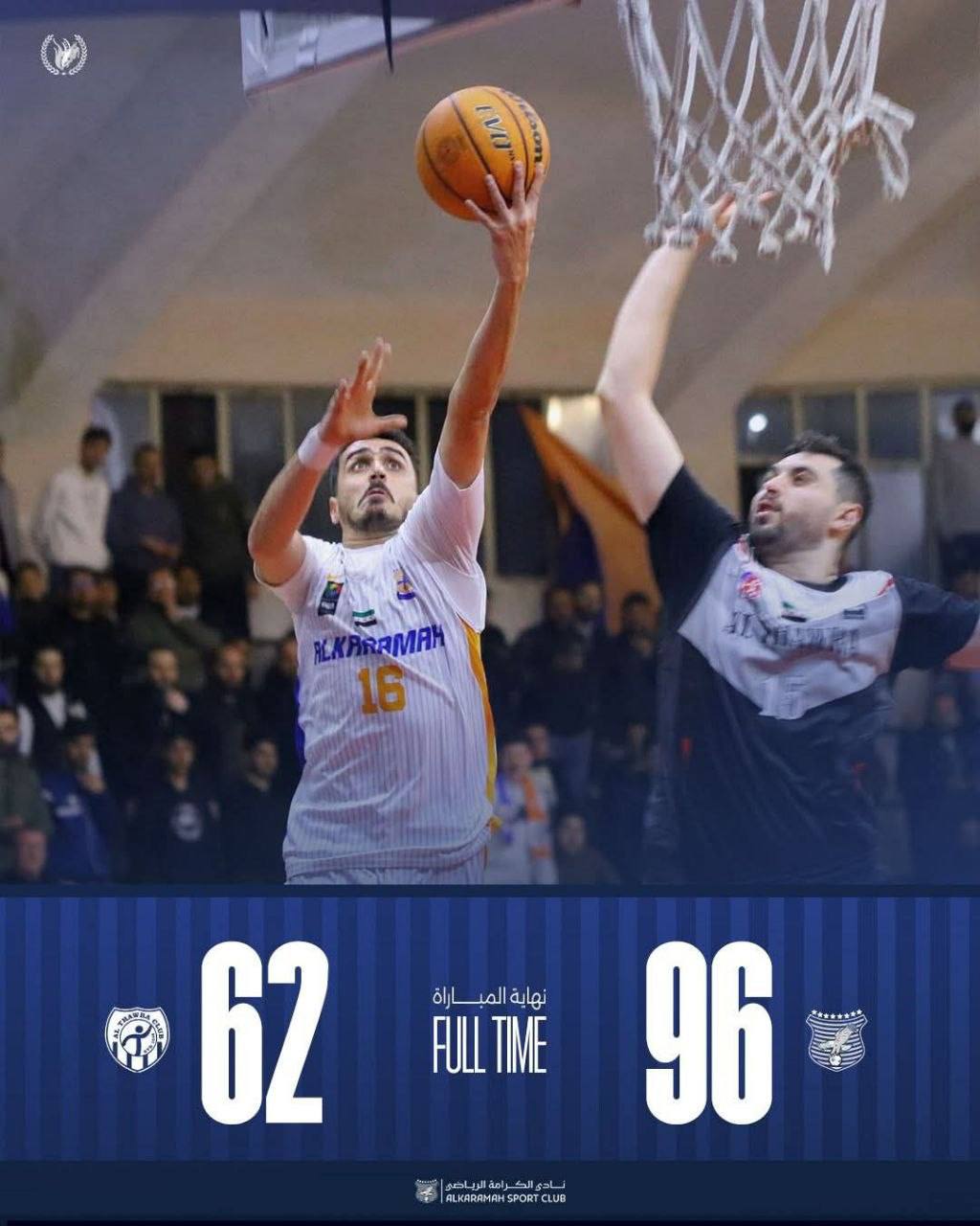 حقق فريق الكرامة لكرة السلة فوزاً كبيراً على فريق الثورة بفارق 34 نقطة، في المباراة التي جمعتهما في صالة غزوان أبو زيد بحمص، ضمن منافسات الجولة الرابعة من إياب الدوري السوري.