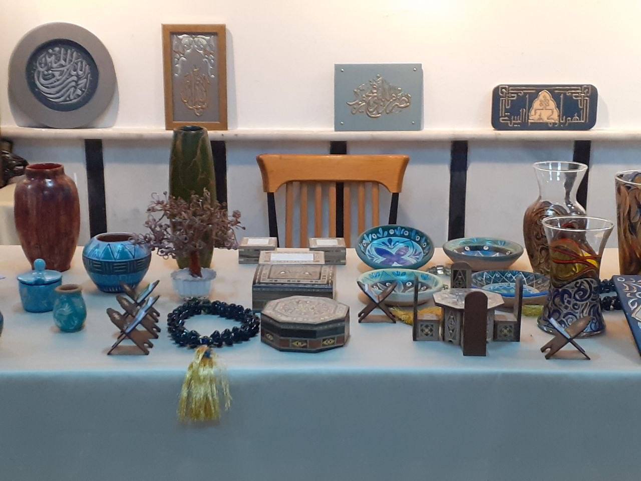 وشهد المعرض مشاركات لافتة، من بينها مشاركة علياء سباعي، خريجة هندسة الديكور (تصميم داخلي)، التي عرضت سبع لوحات خشبية مغطاة بالقماش ومزينة بآيات قرآنية وتشكيلات زهرية، في أولى مشاركاتها سعيًا لترك بصمة فنية مميزة.