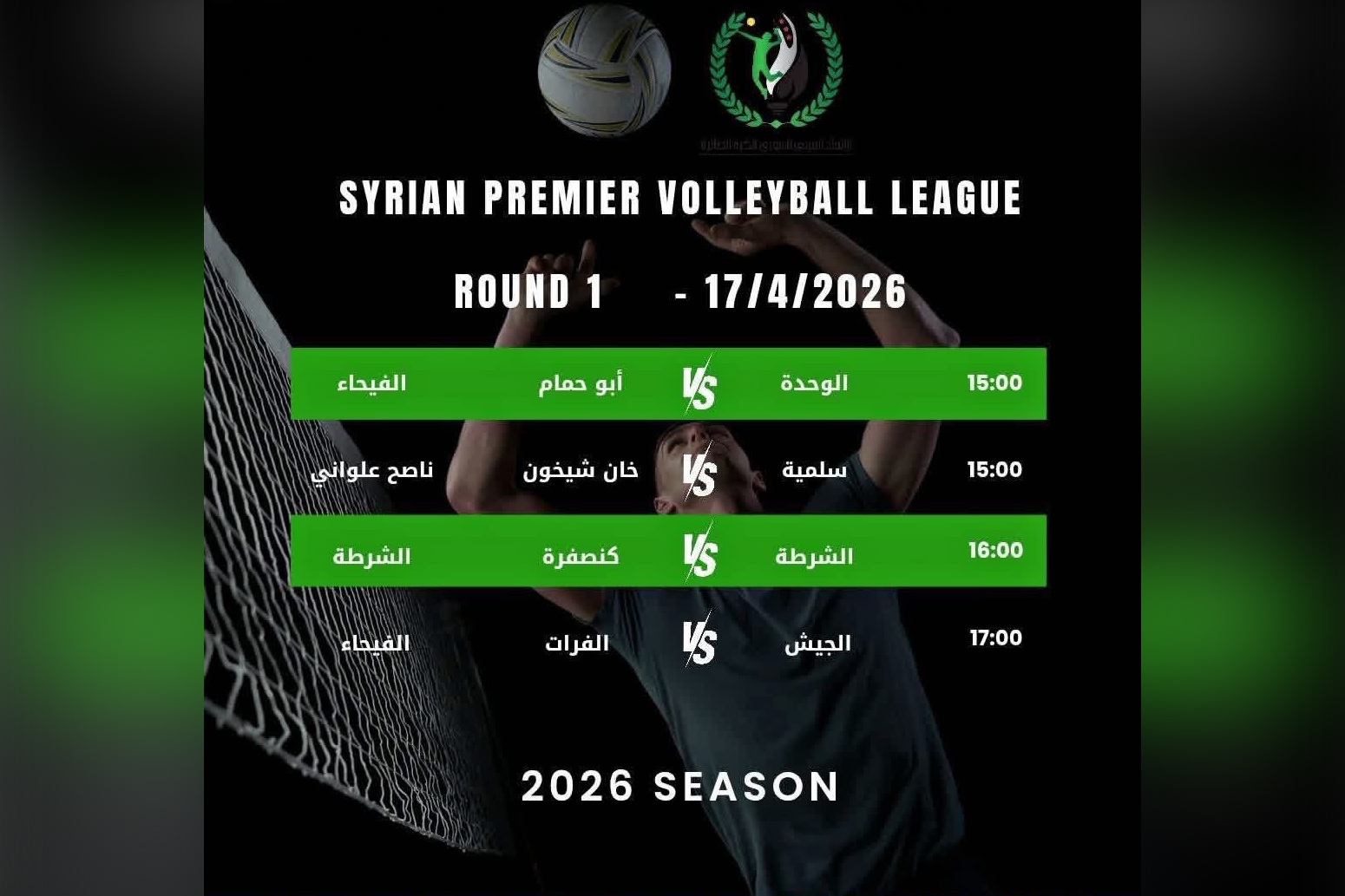 وفي التفاصيل تقام المباريات في صالتي الفيحاء والشرطة في دمشق، وصالة ناصح علواني في حماة.