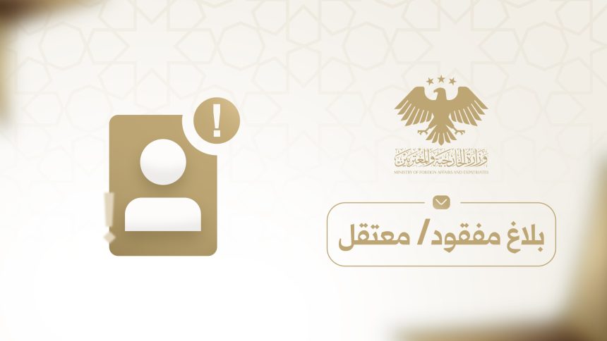 أطلقت وزارة الخارجية والمغتربين اليوم الأحد، نافذة “بلاغ مفقود/معتقل” الإلكترونية، والتي تشكل بوابة أمل جديدة لإنهاء معاناة آلاف السوريين الذين قادتهم ظروف الحرب القاسية خلال الأعوام الأربعة عشر الماضية إلى مغادرة البلاد بطرق غير نظامية، أو الذين يواجهون إجراءات احتجاز وقضايا قانونية في دول اللجوء والاغتراب.
