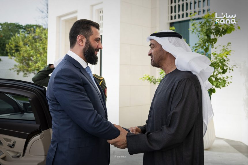 وكان الرئيس الشرع وصل اليوم أبو ظبي في إطار جولته الخليجية التي بدأها أمس وشملت كذلك المملكة العربية السعودية ودولة قطر.