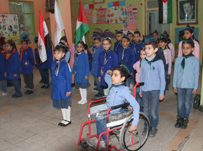 وأضافت : يوجد في المدرسة أطفال من المكفوفين و ضعيفي السمع و الشلل أو فقدان الأطراف وتم دمجهم مع طلاب المدرسة العاديين و قدمت لهم كافة أشكال الدعم والمساعدة ليتمكنوا من الانخراط في المجتمع و التأقلم مع نظام المدرسة و المشاركة في نشاطاتها المختلفة ..