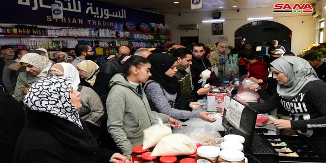 الساعات الأولى لتوفر السلل الغذائية في صالات المؤسسة السورية للتجارة شهدت إقبالا ملحوظا من قبل المواطنين الذين أكدوا أهمية ما تحتويه من مواد غذائية أساسية ومتنوعة بفارق سعري كبير عن السوق بحسب فهمي الشالاتي الذي أشار إلى أنها جاءت بالوقت المناسب مع ارتفاع الأسعار.