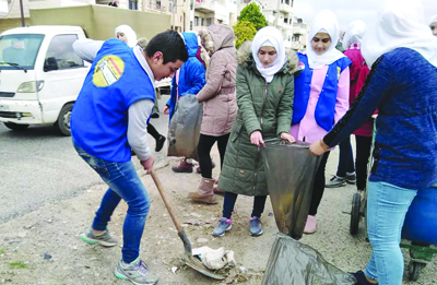 و أشارت سولينا حمادة عضو قيادة اتحاد شبيبة الثورة رئيس مكتب العمل التطوعي والبيئة المركزي إلى أهمية هذه الحملة البيئية التطوعية التي يشارك فيها أكثر من 500 شاب وشابة وهي تقام بنفس التوقيت في كل المحافظات وأوضحت أن هذه الحملات تساهم في عودة الحياة والرونق للمدينة والأحياء التي تضررت بفعل الإرهاب الأسود وتساعد في عودة الأهالي إلى منازلهم ..