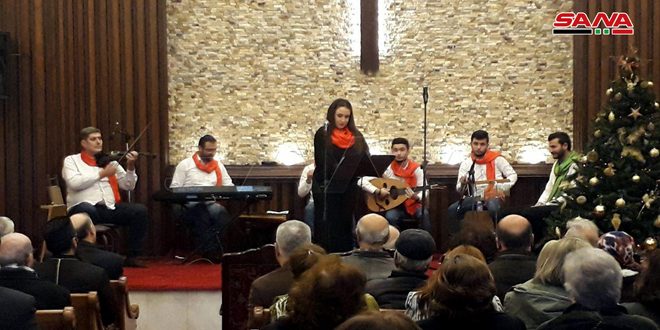 أغان وترانيم مستوحاة من وحي عيد الميلاد ودعوات من أجل السلام في سورية استضافتها الكنيسة الإنجيلية المشيخية في حمص “فرحة الأعياد”.