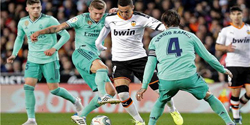 انتزع ريال مدريد التعادل 1-1 خارج ملعبه مع بلنسية في دوري الدرجة الأولى الإسباني لكرة القدم بهدف من كريم بنزيمة في الوقت المحتسب بدل الضائع جاء بعد إنقاذ ضربة رأس من حارس مرمى فريقه تيبو كورتوا.