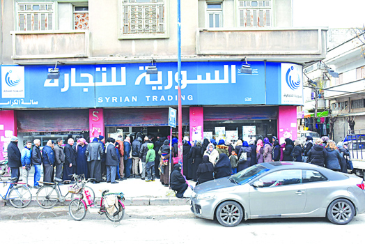 ازدحام كبير لاحظناه على أبواب صالات ومنافذ بيع السورية للتجارة وعلى ما يبدو أن الأسباب متعددة منها ما هو متعلق ببعض الشائعات التي صدقها المواطنون كعدم قدرتهم على استلام حصصهم من المواد المدعومة في الأشهر القادمة ما لم يستلموا حصتهم في هذا الشهر أو كما سمـــــاه بعض المواطنين ( تثبيت اسم ) وهذا ما نفاه تماماً مدير فرع السورية للتجارة في حمص عماد ندور الذي أكد أن حصص المواطنين محفوظة في كل شهر حتى إن لم يستلم حصته في الشهر الذي سبق وبالنسبة لتوفر المواد بين ندور أن الصالات تغذى بشكل يومي ويتم استكمال النقص والمواد متوفرة في جميع الصالات التي بلغ عددها 88 صالة ومنفذ بيع