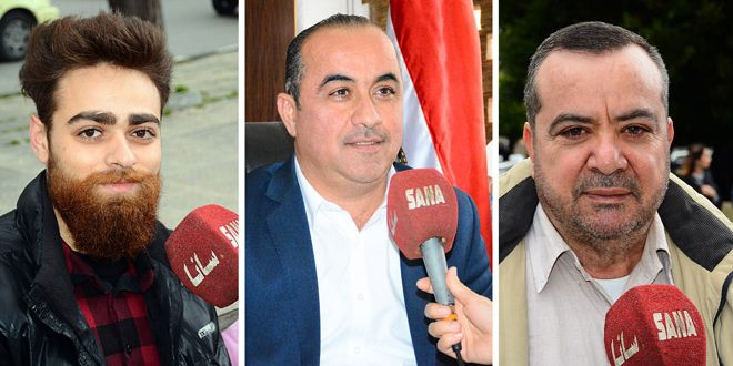 بدورهما شدد المواطنان خالد شهابي ومقداد عثمان على أن عدوان أردوغان المباشر على سورية يأتي بعد فشل أدواته وعملائه من العصابات الإرهابية وانهيارهم بفضل بسالة جنودنا الذين يسطرون أروع ملاحم البطولة والفداء.