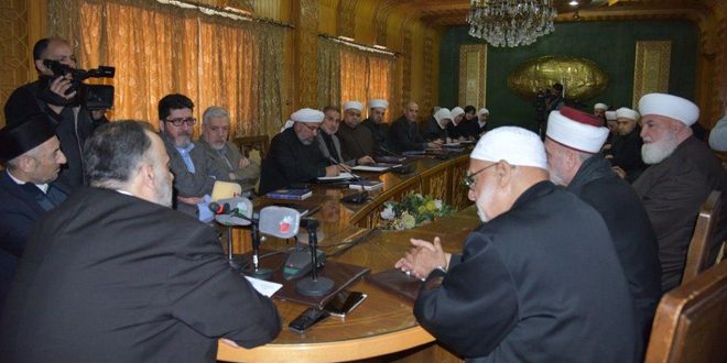 ووفق بيان تلقت سانا نسخة منه إنه عقب انتهاء اجتماع اليوم في مبنى الوزارة تم إصدار الفتوى التي تشمل أيضا تعليق كل الدروس الدينية واللقاءات الجماعية في سائر المساجد وصالات الأفراح والتعازي التابعة لها.