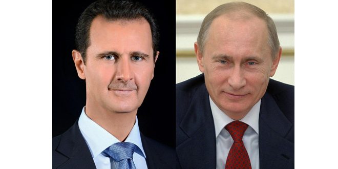 تلقى السيد الرئيس بشار الأسد اتصالاً هاتفياً من رئيس جمهورية روسيا الاتحادية فلاديمير بوتين تناول تطورات الأحداث في سورية.