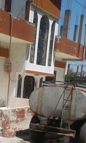 وردتنا شكوى من أهالي الحي الجنوبي في مدينة تلكلخ يأملون فيها أن تتم معالجة وضع المياه في حيهم حيث تصلهم المياه مرة كل أربعة أيام لمدة لا تتجاوز الثلاث ساعات مما يضطرهم لشراء المياه من الصهاريج التي تملأ الشوارع كما يبدو واضحا في الصورة.