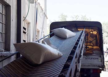 أما بخصوص مطحنة الهلال فهي تستقبل كميات القمح الواردة إليها وتقوم بخطة عملها 100 % وبطاقة إنتاجية تبلغ /100/ طن يومياً .