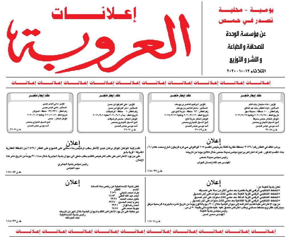 اعلانات العروبة إعلانات في 13 تشرين أول , 2020 شارك FacebookWhatsAppFacebook MessengerTelegramTwitter