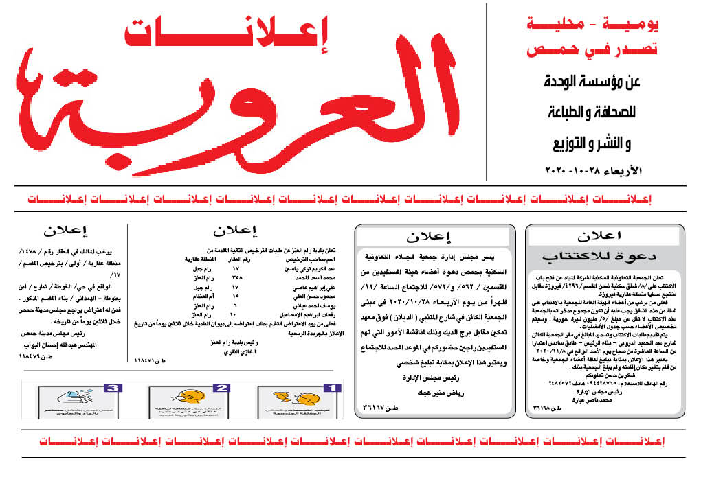 اعلانات العروبة إعلانات في 28 تشرين أول , 2020 شارك FacebookWhatsAppFacebook MessengerTelegramTwitter