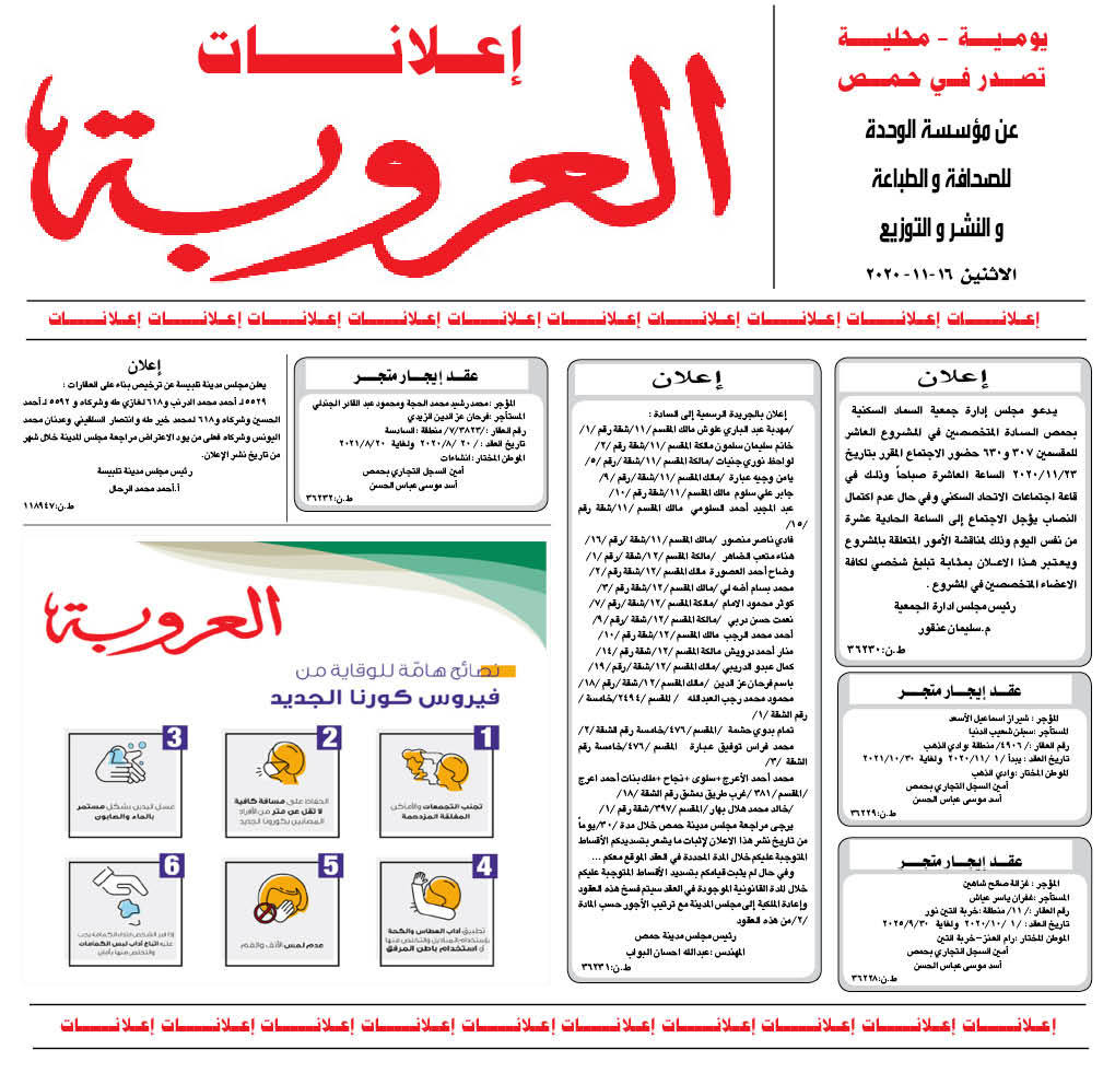 اعلانات العروبة إعلانات في 16 تشرين ثاني , 2020 شارك FacebookWhatsAppFacebook MessengerTelegramTwitter