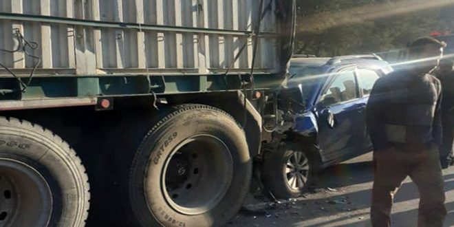 وذكر العميد غياث عاقل مدير فرع الدفاع المدني بحمص أن الحادث ناجم عن اصطدام سيارة سياحية مع شاحنة نقل كبيرة مشيرا إلى قيام عناصر الفرع بالتعاون مع شرطة الطرق بتأمين الطريق وإسعاف سائق السيارة إلى مشفى الباسل بحي الزهراء بمدينة حمص لكنه فارق الحياة فيما بعد.