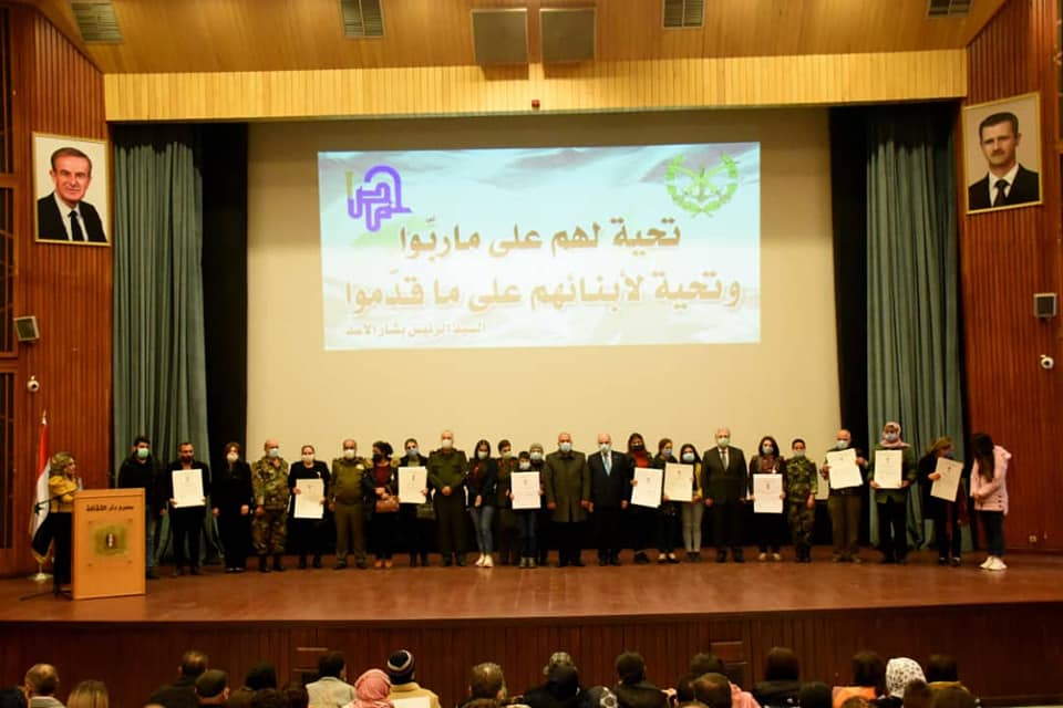 تقديرا لتضحيات الشهداء ووفاء لدمائهم الطاهرة قلدت محافظة حمص 200 أسرة شهيد أوسمة الإخلاص المقدمة من رئاسة مجلس الوزراء بالتنسيق مع مديرية شؤون الشهداء والمفقودين والجرحى في القيادة العامة للجيش والقوات المسلحة.