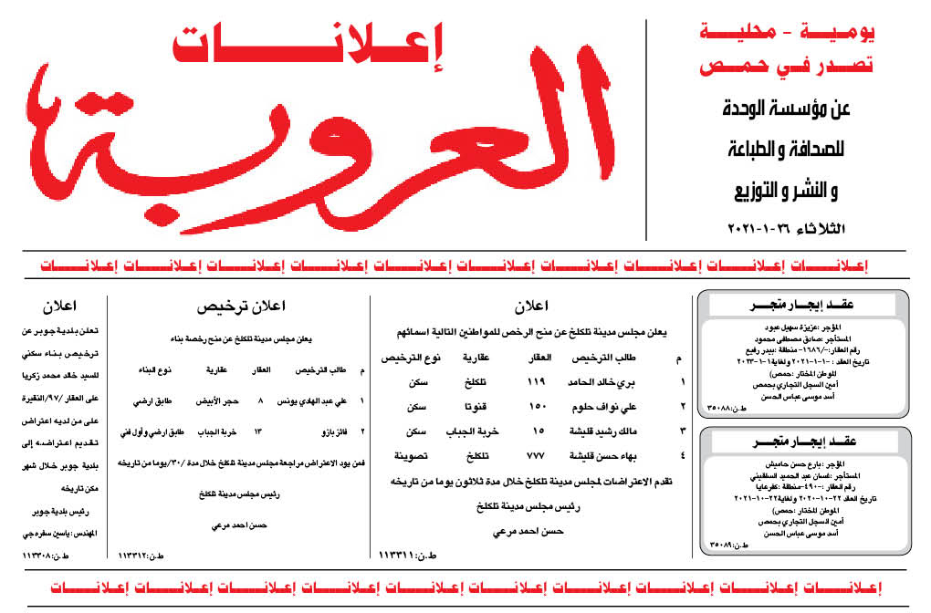 اعلانات العروبة إعلانات في 26 كانون الثاني , 2021 شارك FacebookWhatsAppFacebook MessengerTelegramTwitter