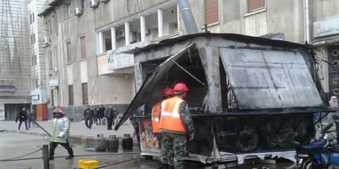 أصيب 4 عمال بحروق متوسطة جراء حريق نشب بأحد الأكشاك المتخصصة ببيع الوجبات السريعة قرب الساعة الجديدة وسط مدينة حمص.
