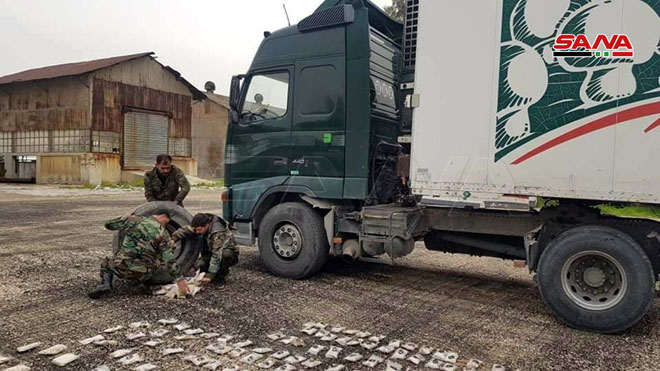 وضبطت الجهات المختصة في حمص في الـ 20 من شباط الفائت كميات كبيرة من المخدرات مخبأة في سيارة خاصة أثناء محاولة إدخالها عبر الحدود من الأراضي اللبنانية إلى سورية.