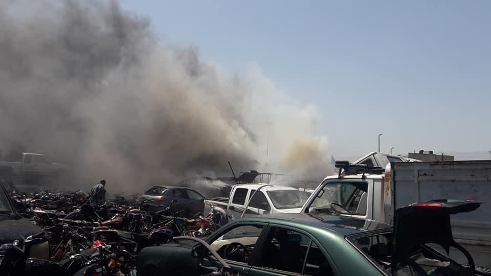 أخمد رجال إطفاء حمص اليوم حريقا كبيرا نشب في مرآب الجمارك قرب جسر بابا عمرو.