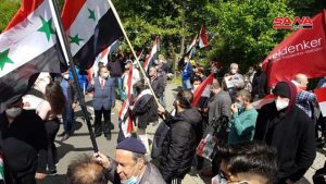 وأكد المشاركون في الوقفة الاحتجاجية اليوم رفضهم الانتهاكات القانونية التي تمارس ضدهم من قبل السلطات الألمانية مجددين تمسكهم بالثوابت الوطنية وسيادة سورية التي لا يمكن المساس بها.