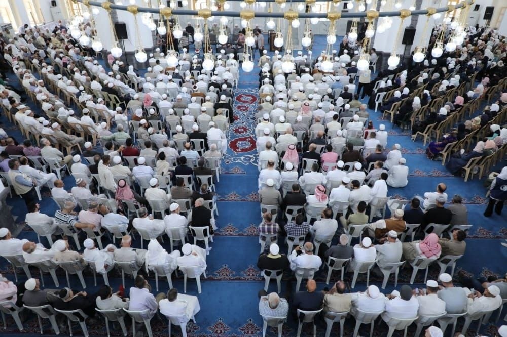 دعماً للاستحقاق الدستوري للانتخابات الرئاسية المقررة في السادس والعشرين من الشهر الجاري وتأكيداً على الوحدة الوطنية واستقلالية القرار السوري ورفض كل أشكال التدخل الخارجي أقيم في مسجد خالد بن الوليد تجمع ضم أرباب الشعائر الدينية بحضور وزير الأوقاف الدكتور محمد عبد الستار السيد.