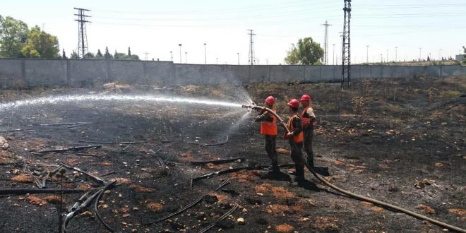 أخمد عناصر إطفاء حمص اليوم حريقاً نشب بأعشاب يابسة على طريق حمص دمشق بالقرب من مفرق بلدة كفرعايا.