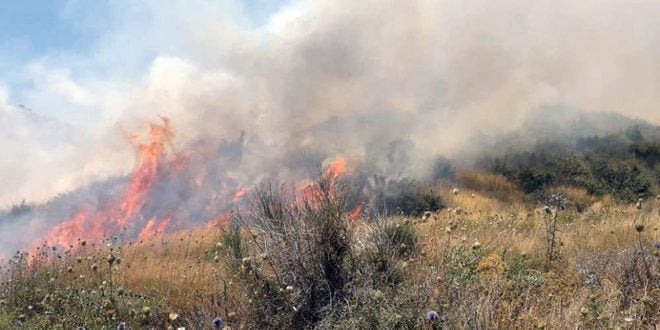 أخمد كوادر الإطفاء في محافظة حمص اليوم حريقا كبيراً نشب في أشجار مثمرة وحراجية وأعشاب يابسة بالقرب من بلدة مرمريتا بريف حمص الغربي.