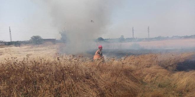 أخمد عناصر الدفاع المدني بالتعاون مع فوج إطفاء حمص اليوم حريقا اندلع في أعشاب يابسة وأشجار بمدينة حمص.