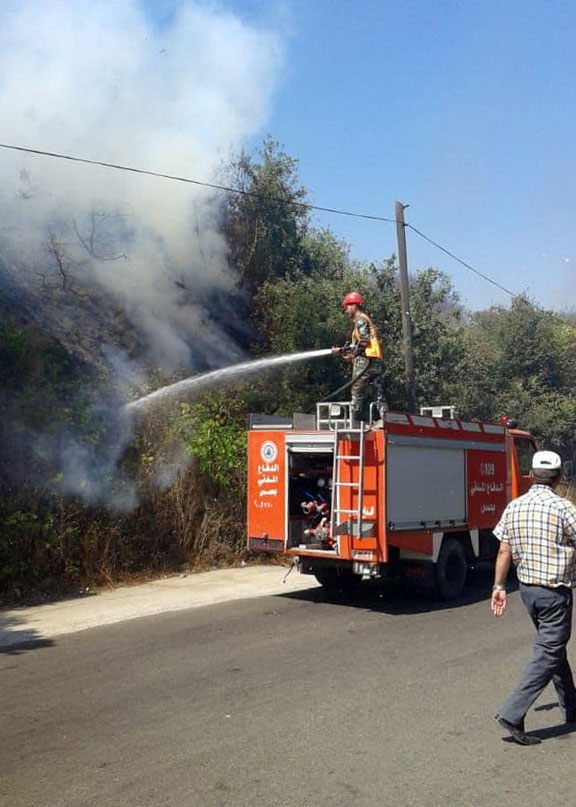 وذكر العميد غياث عاقل مدير الدفاع المدني أن حريقاً اندلع بأعشاب يابسة وأشجار مثمرة نتيجة ماس كهربائي وعلى الفور تحرك عناصر الفرع وعملوا بمؤازرة إطفاء مديرية الزراعة على تطويق الحريق ومنع امتداده ومن ثم إخماده والقيام بعملية التبريد.