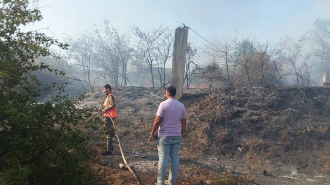 أخمد عناصر الدفاع المدني في حمص اليوم حريقاً اندلع بالأراضي الزراعية لبلدة كفرام بريف المحافظة الغربي.