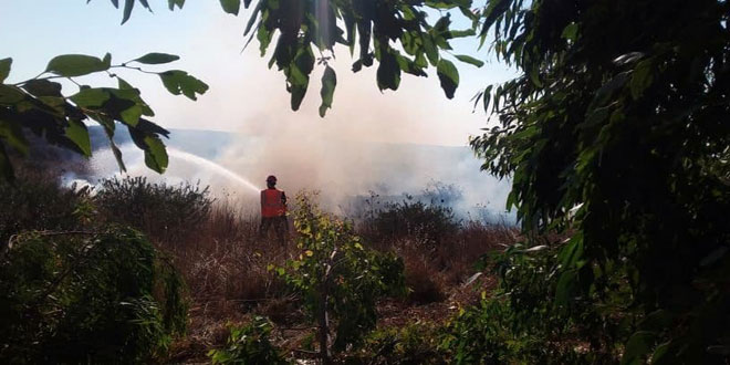 أخمد كوادر الإطفاء في محافظة حمص اليوم حريقين اندلعا في أعشاب يابسة وأشجار حراجية ومثمرة بريف حمص الغربي.
