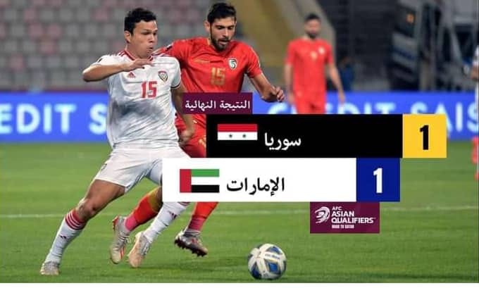 4 – سورية نقطة واحدة من تعادل مع الإمارات 1 – 1 وخسارة بهدف أمام إيران وله هدف وعليه هدفين.