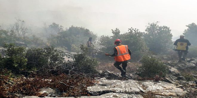 وذكر الياس بيطار رئيس شعبة حراج تلكلخ أن كوادر إطفاء مديرية الزراعة والدفاع المدني تعاملوا مع حريق اندلع بموقع بستان نقابة المهندسين بقرية المزرعة قبل تمدده وتمكنوا من السيطرة عليه وإخماده مشيرا إلى أنه طال دونما ونصف الدونم مزروعة بأشجار التفاح.