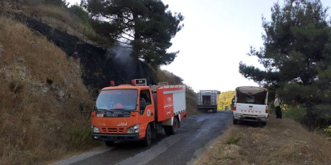 أخمد كوادر الإطفاء في محافظة حمص أمس 3 حرائق اندلعت بمساحات من الأعشاب اليابسة والأشجار الحراجية في منطقة وادي النضارة بريف المحافظة الغربي.
