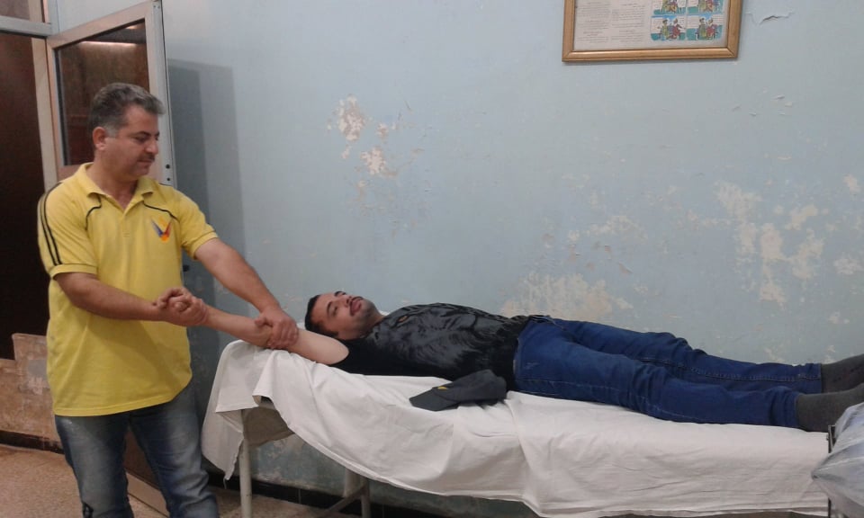 وفيما يتعلق بالمعالجة الفيزيائية ذكر الدكتور ابراهيم ان هذا القسم يقدم خدمات عدة للمواطنين من مدنيين وجرحى حرب بنسبة 300% ولا إمكانية لتعديل المكان أو نقله لاسيما أن هذا القسم يشغل القبو بواقع ثلاث غرف مفتوحة وأربع أسرة وعدة أجهزة خاصة ولا مكان أفضل حاليا رغم أن الواقع الفني غير المريح للقبو من رطوبة ومن صعوبة نزول السلم إذ يضطر الأهالي لحمل مرضاهم ومع ذلك يقدم الخدمة بشكل جيد , منوها إلى المراسلات المتعلقة بضرورة إصلاح و صيانة جهاز الأمواج فوق الصوتية، ووجود أجهزة خاصة بالمعالجة وتمنى أن يتم تخصيص الباب الخارجي من الجهة اليسارية للمركز لدخول المرضى لوجود درج يسهل حركة الكرسي المتحرك للمريض.