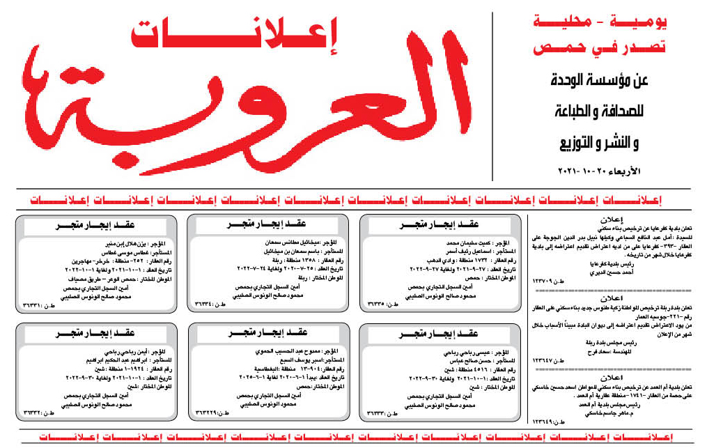 اعلانات العروبة إعلانات في 20 تشرين أول , 2021 شارك FacebookWhatsAppFacebook MessengerTelegramTwitter